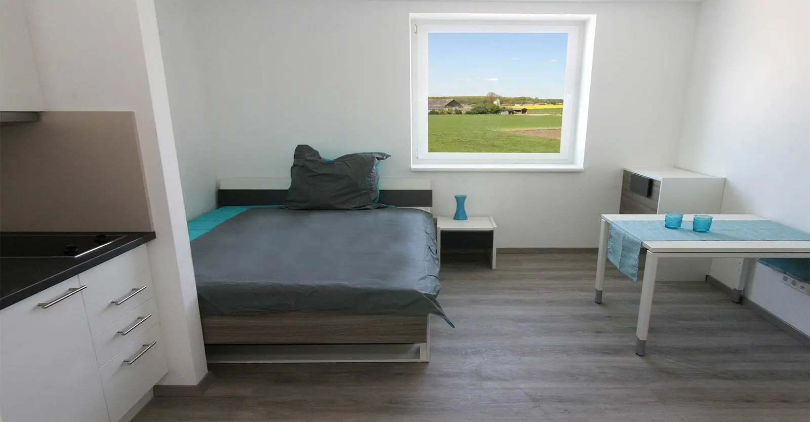 Wir bieten drei Größen: 12 qm Einraum-Apartment (ab 490 €/Monat), 16 qm Einraum-Apartment mit Küchenzeile (ab 550 €/Monat) und 20 qm 1-2-Raum-Apartment mit Küchenzeile (ab 600 €/Monat).