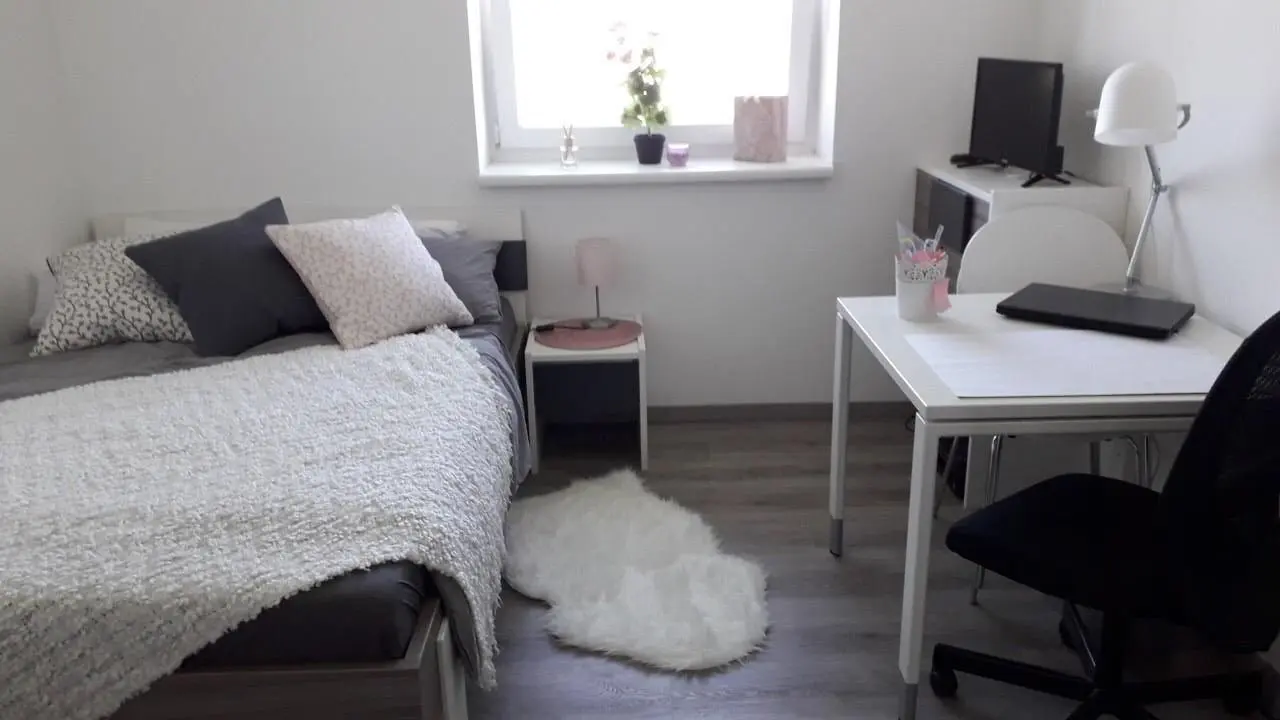 - Komplett möbliert (Bett, Schrank, Tisch, Stuhl)